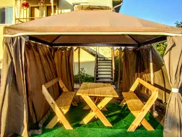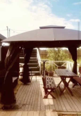 Дом полностью оборудован для комфортного проживания, есть все необходимое: электрочайник, холодильник, фен, утюг, микроволновая печь, плита, посуда, душевая комната, кухня, зона барбекю.