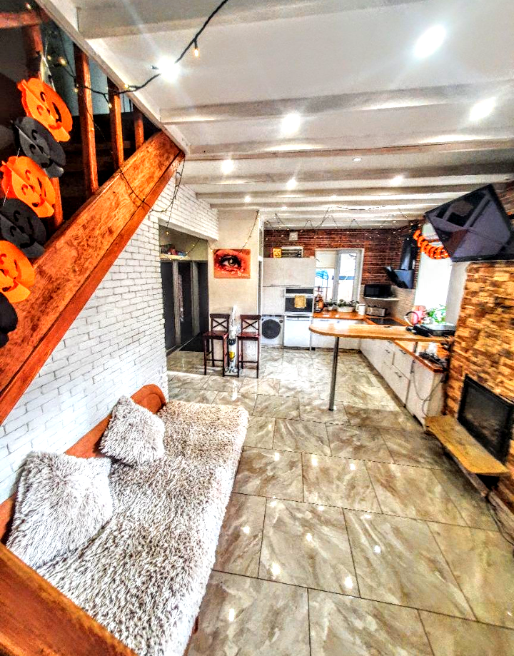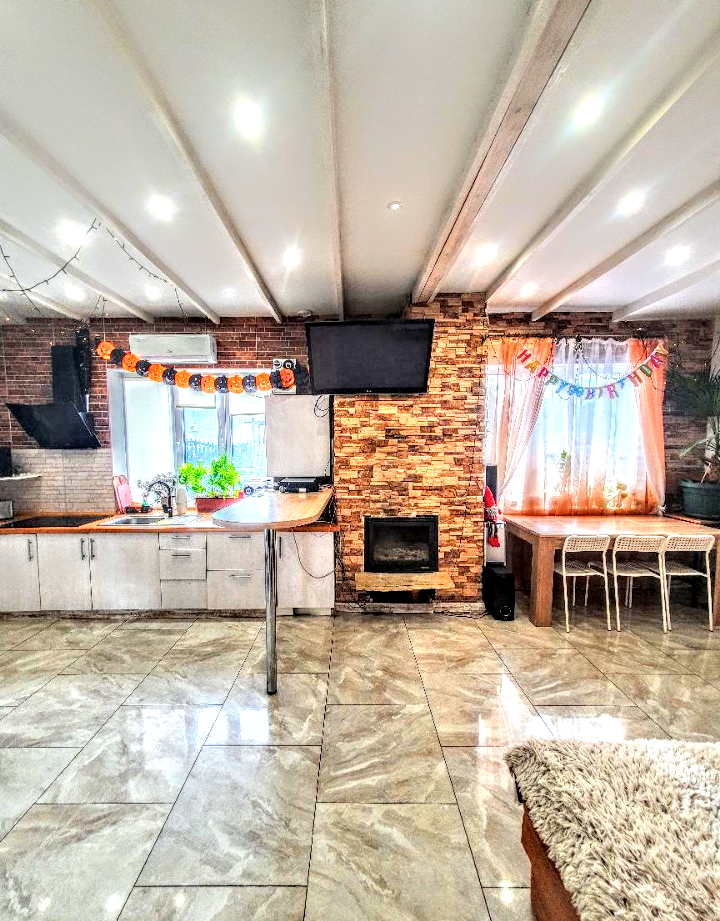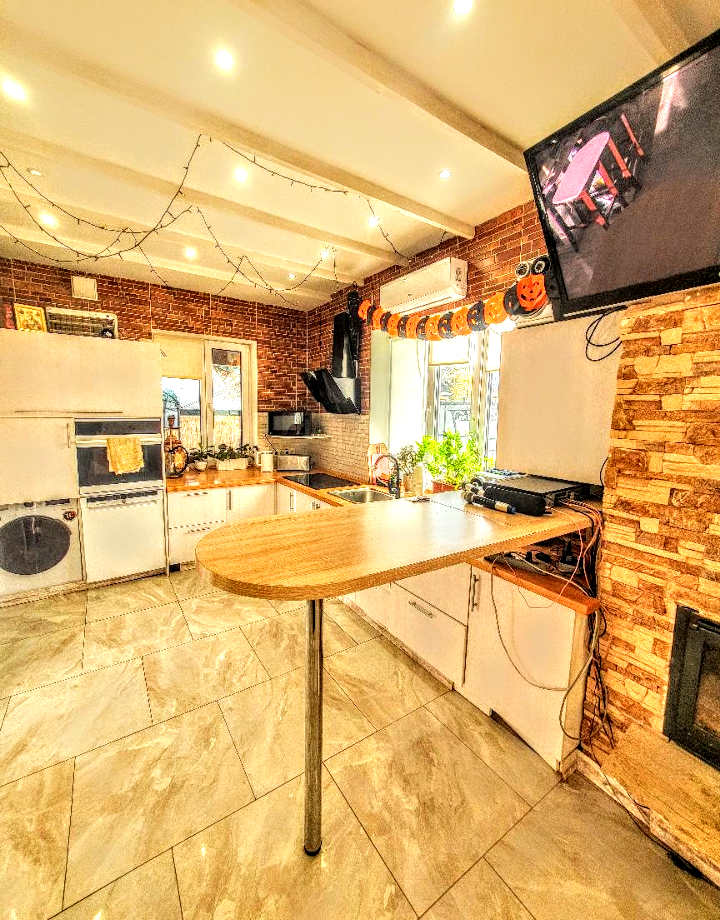 Дом с 3 спальнями и большой кухней-гостиной, также есть детская комната , 3 санузла., полы с подогревом.