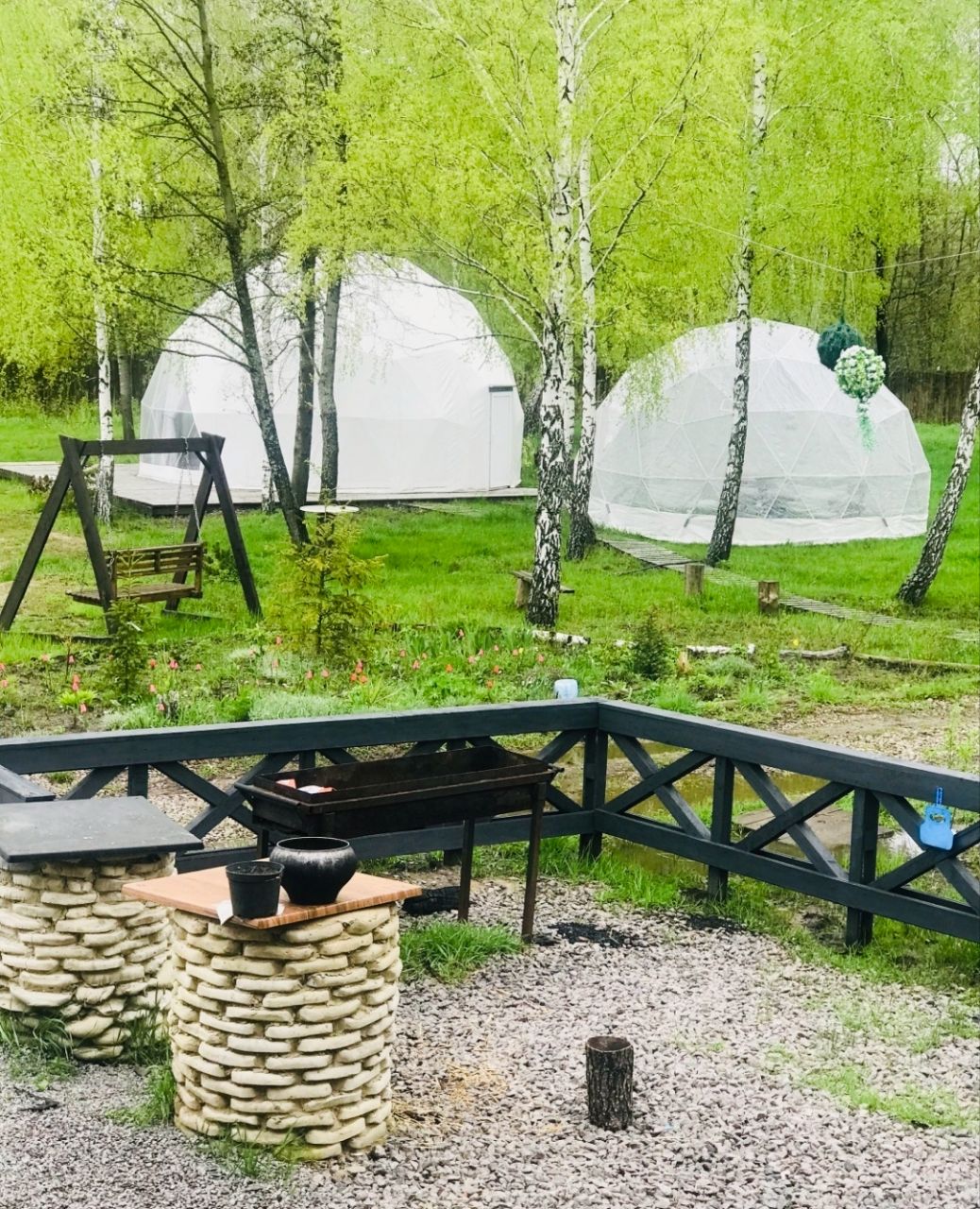 Для детей есть детская площадка с кресло-качелей, гамаком и дорожками.