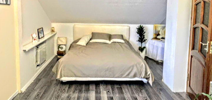 Второй этаж: 2 спальни и санузел.Есть вся необходимая бытовая техника, теплый пол, мангал.